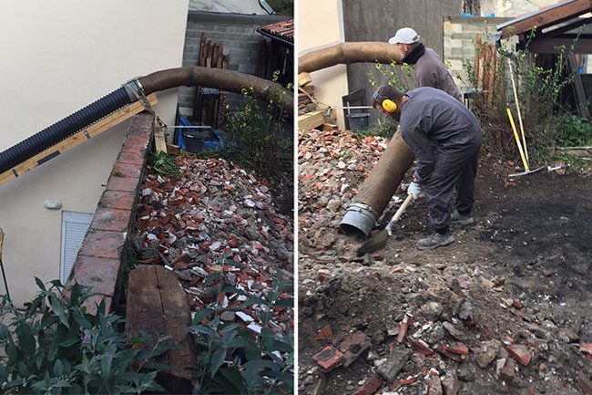 L’excavatrice-aspiratrice procède à l’évacuation rapide et sécurisée des gravats, y compris en zones difficiles d’accès et sans rejet de poussières.